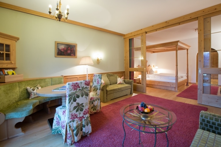 At Sonnenburg, hospitality is a top priority — your comfort is our greatest concern. This also applies to our 4-star superior Landhaus Sonnenburg rooms. Enjoy the welcoming atmosphere of the Junior Suite with its alpine charm, generous space, and personal touch. Whether you’re on a family vacation or attending a conference, everyone feels at home here. Families benefit from the child-friendly infrastructure with a baby package, childcare, youth room and family wellness. Guests attending an event or seminar can reach the in-house conference centre directly below the suite in no time at all. Everyone enjoys the exceptional peaceful location of the country house in the middle of the Lech mountains, somewhat away from the hustle and bustle of the slopes. In winter and in summer.